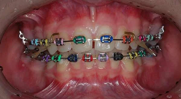 Fixed braces are a common orthodontic solution for correcting misaligned teeth, known as malocclusion. Conditions such as crowding, spacing, crossbite, overjet, deep bite, and open bite can increase the risk of gum disease, tooth decay, and jaw problems. Fixed braces, often referred to as "train tracks," are attached to the teeth and cannot be removed during treatment. They consist of brackets bonded to each tooth and connected by wires, which apply gentle pressure to move teeth into their desired positions. This method allows for precise adjustments to achieve optimal alignment and function.